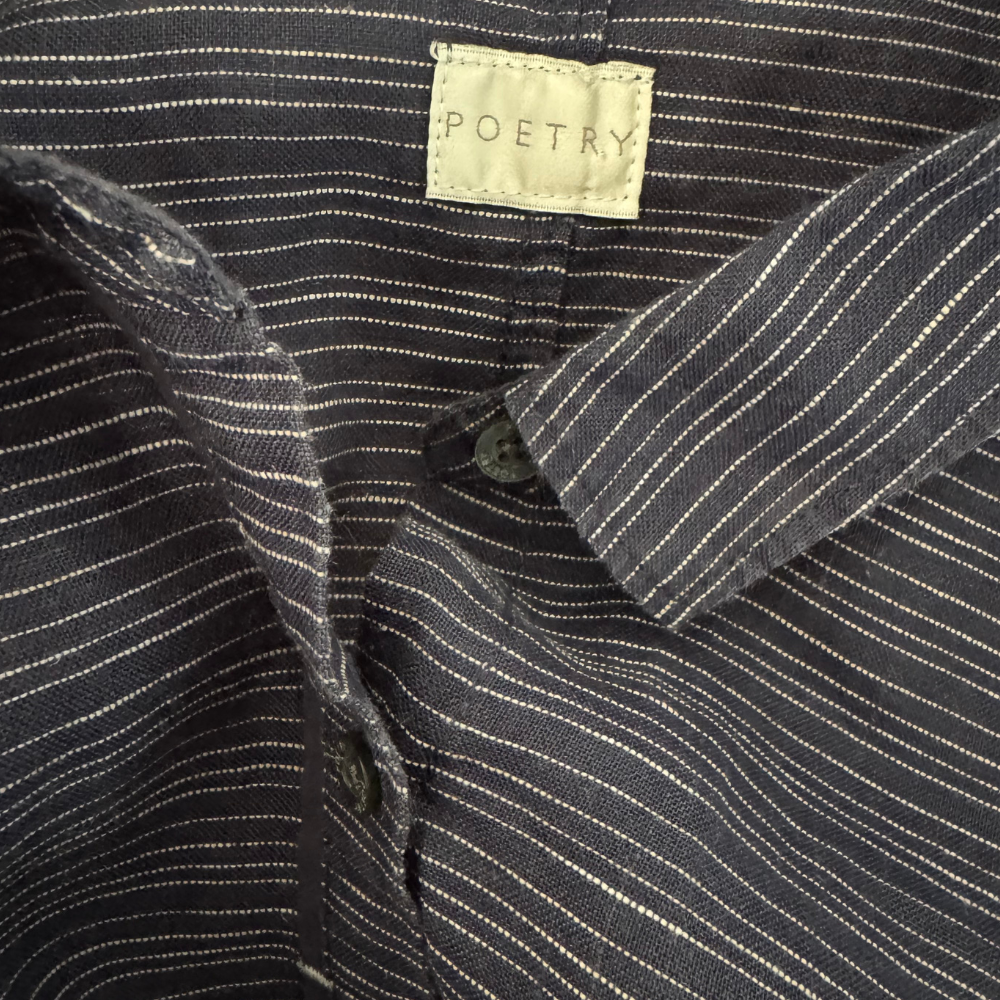 The beauty lies in the detail: a curved hem, mother-of-pearl buttons, or subtle topstitching give it quiet character. Whether in soft neutrals or muted tones, this shirt by Poetry pairs seamlessly with relaxed trousers, jeans, or long flowing skirts. It’s perfect for slow mornings, creative afternoons, or evenings spent with intention.
